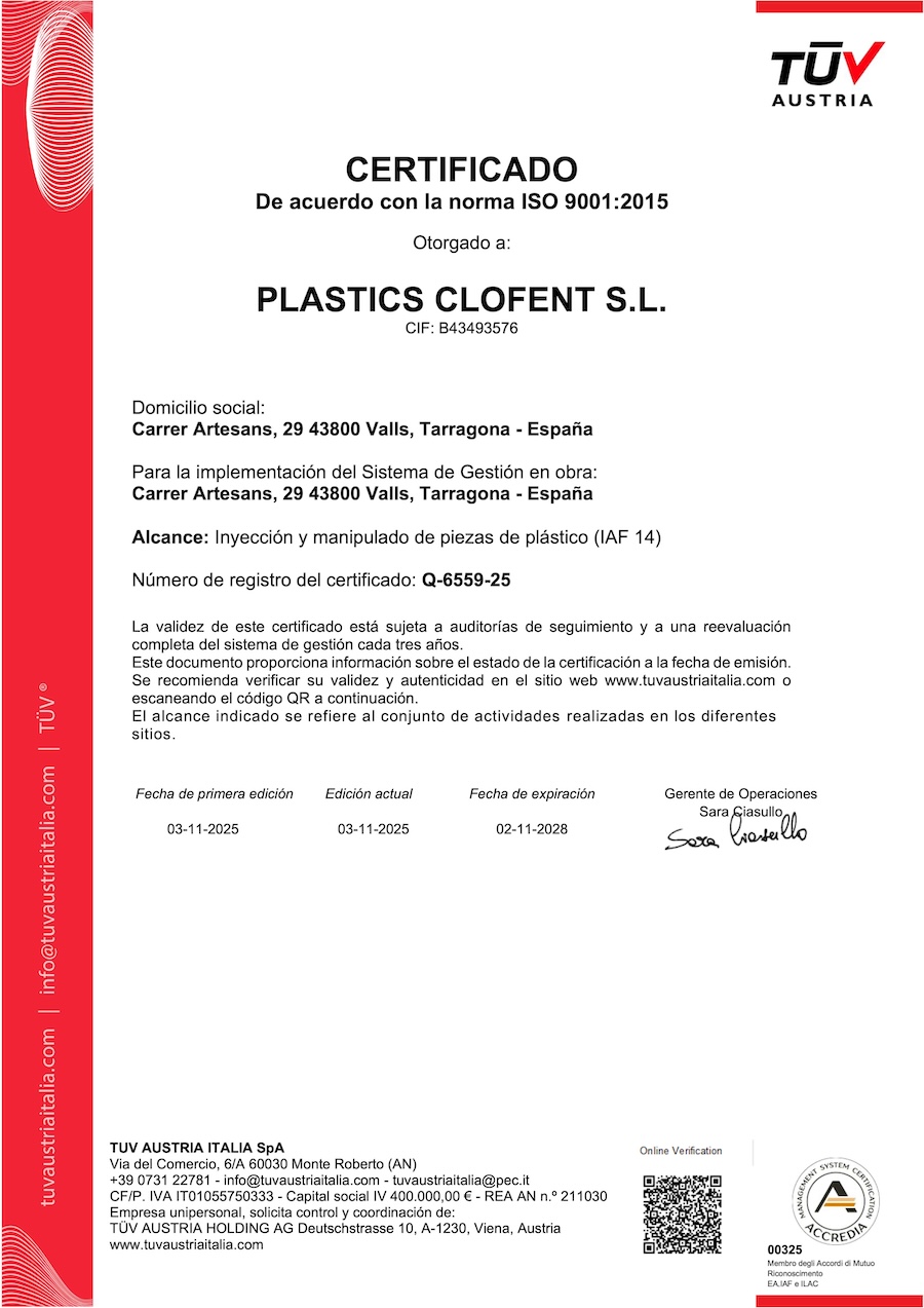 Nuestra actividad se desarrolla bajo un Sistema de Gestión de la Calidad certificado según la norma ISO 9001:2015, que garantiza procesos controlados, eficientes y orientados a la satisfacción del cliente. Este certificado no es solo un sello, sino el reflejo de una forma de trabajar basada en la responsabilidad, la transparencia y la orientación al cliente.